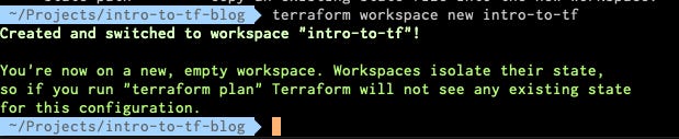 terraform workspace new intro-to-tfYou should see a command response that looks like the below.